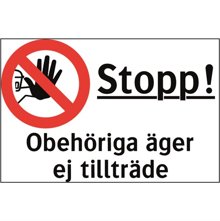 Stopp! Tillträde förbjudetMaterial: Aluminium, 2mm (stolpmontage)Mått: 297x210mm