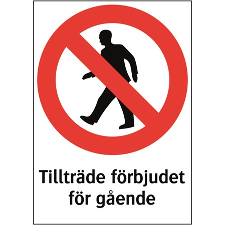 Tillträde förbjudet för gåendeMaterial: Självhäftande folieMått: 210x297mm