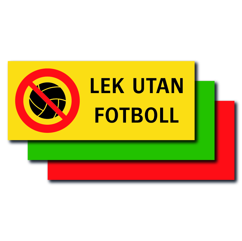 • Standard färgkombination: Gul botten, svart text, röd bård och röd/svart symbol eller ange önskad färgkombination.