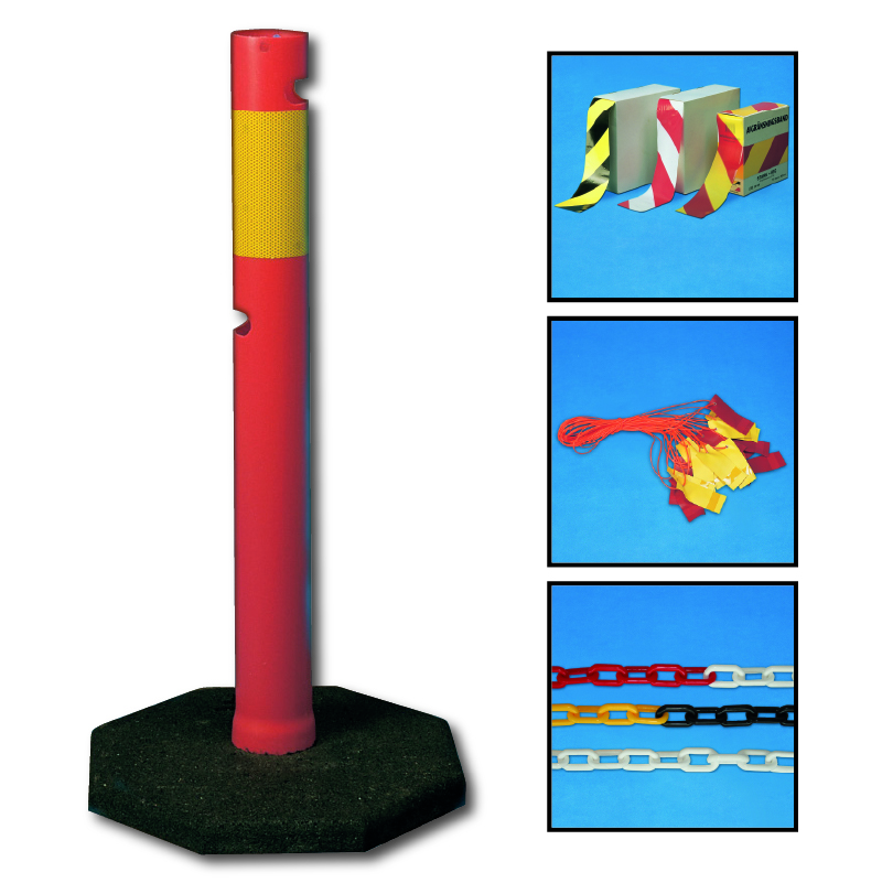 Stabilt trafikrör som passar med spärrband, avstängningslina och plastkedja. Material: Plast, HI-reflex Höjd: 1000mmVikt: 7kg (fotplattan)