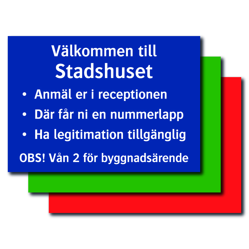 Din egen text!Välj själv färg, format, typsnitt (ca 156 tecken), symboler, logga mm.Material: Självhäftande folieMått: 420x297mm (eller annat mått upp till 0,13m²)Be om offert vid antal över 10st!OBS! Startkostnad tillkommer (artnr 7584).• Standard färgkombination: Blå botten och vit text eller ange önskad färgkombination.• Standardtypsnitt: Sispos eller ange önskat typsnitt.• Pris för ytterligare 26 tecken, lägg till artnr 7366.• Startkostnad för logga om så önskas, lägg till artnr 7365.• Valfria standardsymboler (se nedan).• Valfritt mått (pris som närmast högre m²).• Säg till om skiss önskas innan vi går igång med tillverkningen (utan kostnad).• Typ BA för vägg (kraftig, 2mm), samma pris som typ B.OBS! Ange önskat utförande/text mm i meddelanderutan vid beställning. Klicka på knappen nedan för att bifoga egen symbol/logga etc (eps-fil i vektorgrafik).