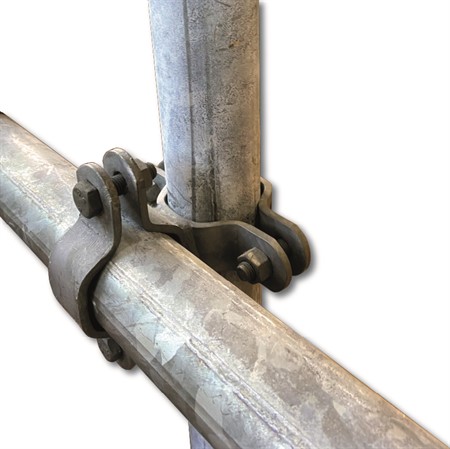 Varmförzinkade klammerfästen för dubbelmontage av kantbockade B-skyltar* på stolpe/rör. Det behövs 2st klammer för 2st skyltar.