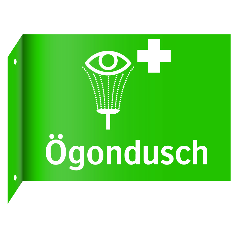 ÖgonduschMaterial: Aluminium, 0,7mm (väggmontage). Dubbelsidig flaggskylt som är kantbockad (90°) i ena sidan med 2st fästhål.Mått: 210x148mm