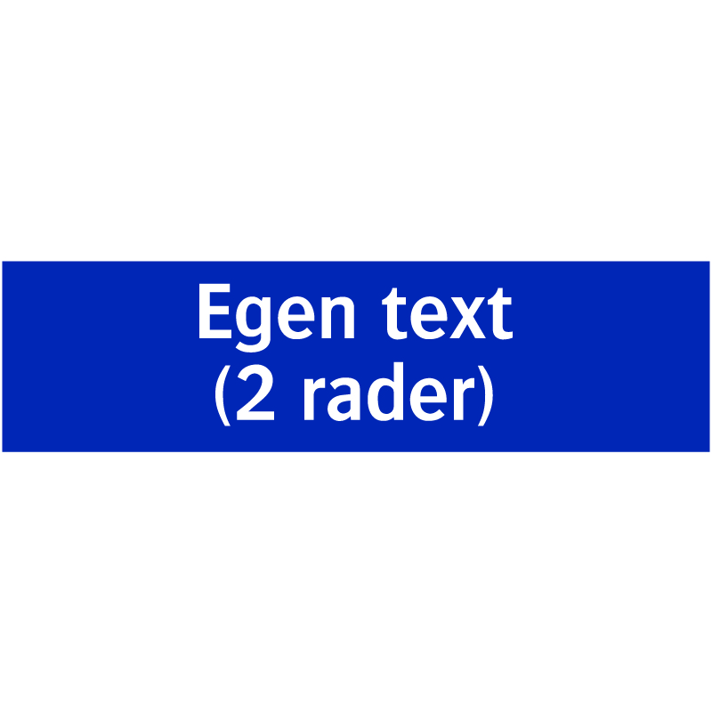 Egen text2 rader, max 17 tecken per radMaterial: Aluminium, 0,7mm (väggmontage)Mått: 650x175mmOBS! Ange önskad text i meddelanderutan vid beställning.
