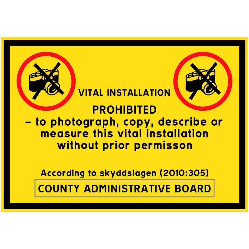 NYHET!2.6 LänsstyrelsenEnligt skyddslagen (2010:305) samt FFS 2010:5.Material: Aluminium, 0,7mm (väggmontage)Mått: 297x210mm